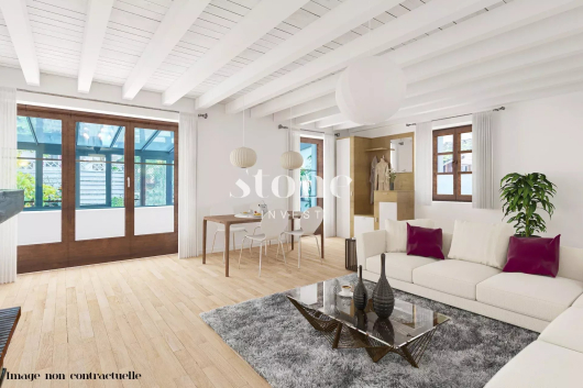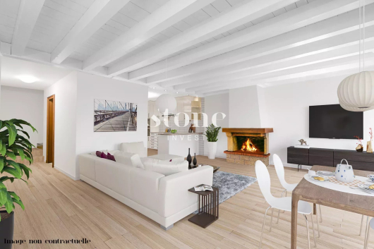 Si vous recherchez des volumes et de l’espace, venez découvrir cet ancien corps de ferme transformé en un spacieux triplex de 313 m2 PPE en 1987 dans le charmant village de Russin.