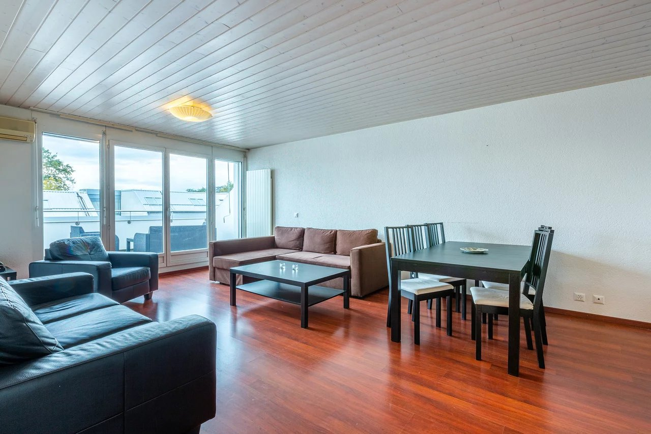 Splendide appartement de 4 pièces en attique totalisant une surface de 123 m2, proche du lac et de toutes commodités se composant de la manière suivante :