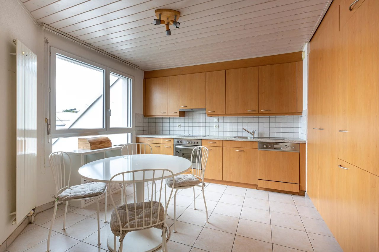 Splendide appartement de 4 pièces en attique totalisant une surface de 123 m2, proche du lac et de toutes commodités se composant de la manière suivante : Spacieux hall d’entrée, cuisine entièrement équipée, salle de douche avec WC et lavabo, une chambre parentale avec salle de bains attenante,...