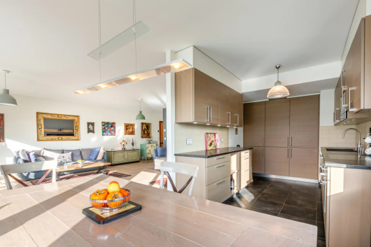 Les espaces de ce penthouse sont distribués de manière optimale et l’espace jour est bien séparé de la partie nuit.
