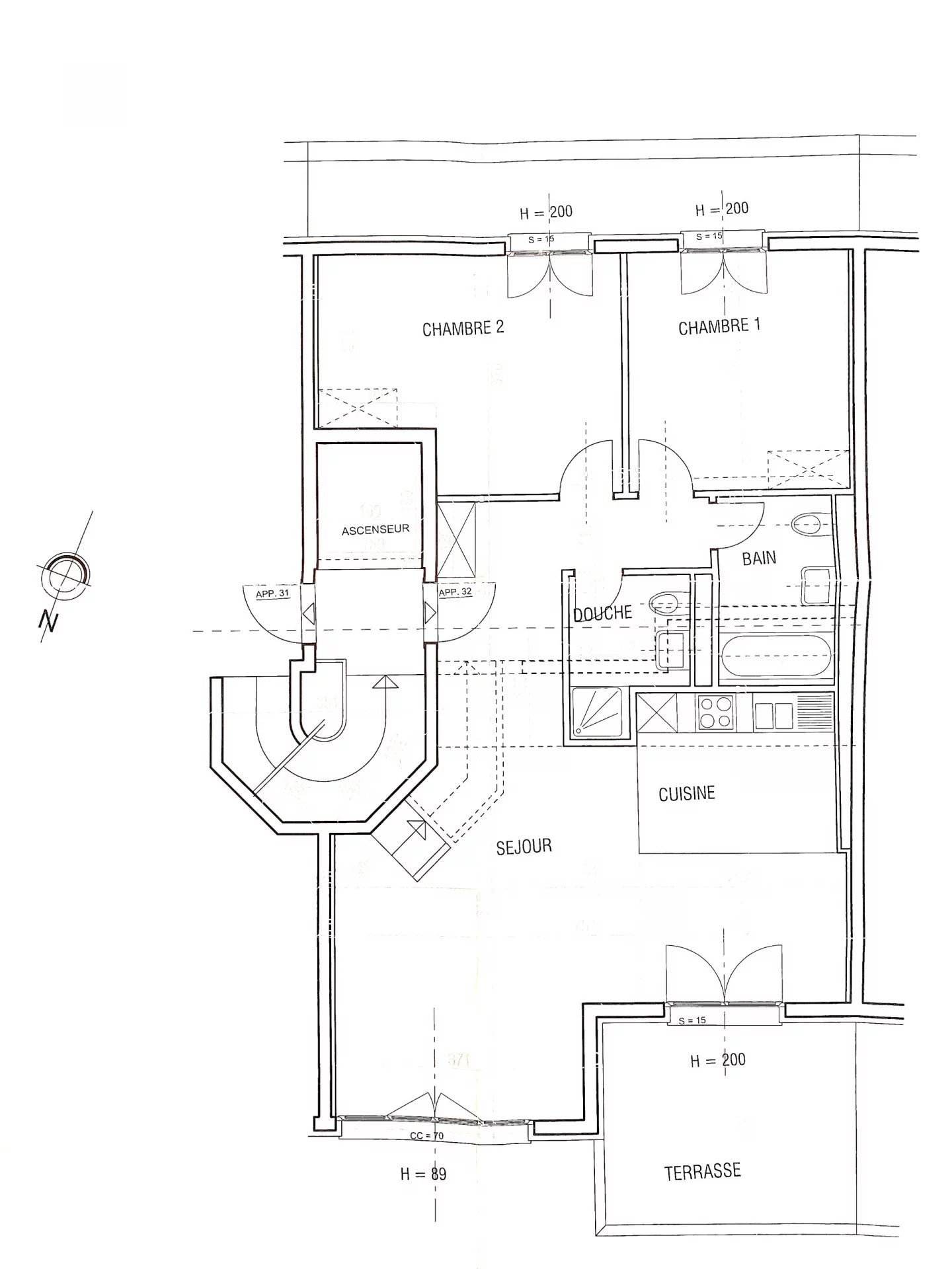 L'appartement offre à l'étage de 95m2 un hall avec rangement, un lumineux séjour ouvert sur la cuisine entièrement aménagée.