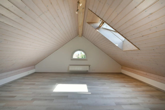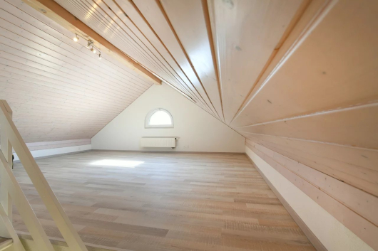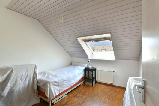 D'une surface utile totale d'environ 120m2, il offre 2 chambres avec 1 salle de bains, un petit bureau ainsi qu'une cuisine agencée. Les combles sont chauffées et avec velux et peuvent être utilisées selon vos besoins, on y trouve une salle de douche prête à aménager.