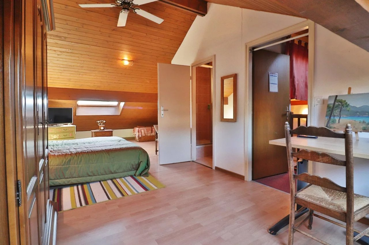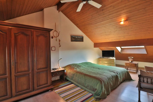 Les combles aménagées offrent un 3ème chambre, elle profitent de 2 velux et d'une salle de bains avec douche et WC.