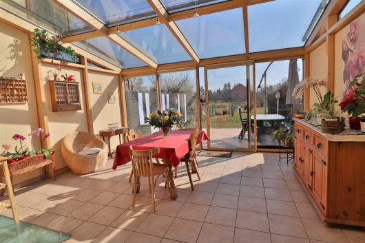 De la véranda on accède à la terrasse et à l’agréable jardin, entièrement plat et clôturé.