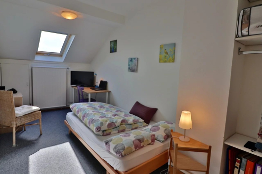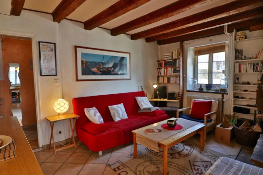 La maison se compose au rez d’une cuisine équipée, d’un salon avec cheminée et d’un wc. Au 1er étage, on trouve un deuxième salon, une spacieuse chambre et un bureau. Au 3ème étage: 2 chambres, l'une d'elles avec galetas ainsi qu’une salle de bains avec baignoire. A l’extérieur, une charmante petite terrasse.