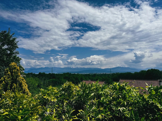 - A l'étage : un espace salon/salon à manger avec une belle vue sur le lac, les Alpes et le Jura, une cuisine équipée et ouverte sur le séjour, deux salles de douche, deux chambres dont une avec salle de bain en-suite.