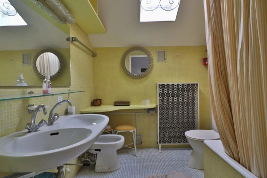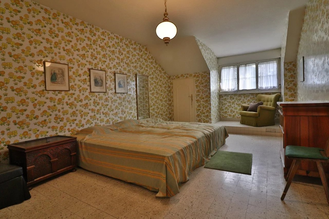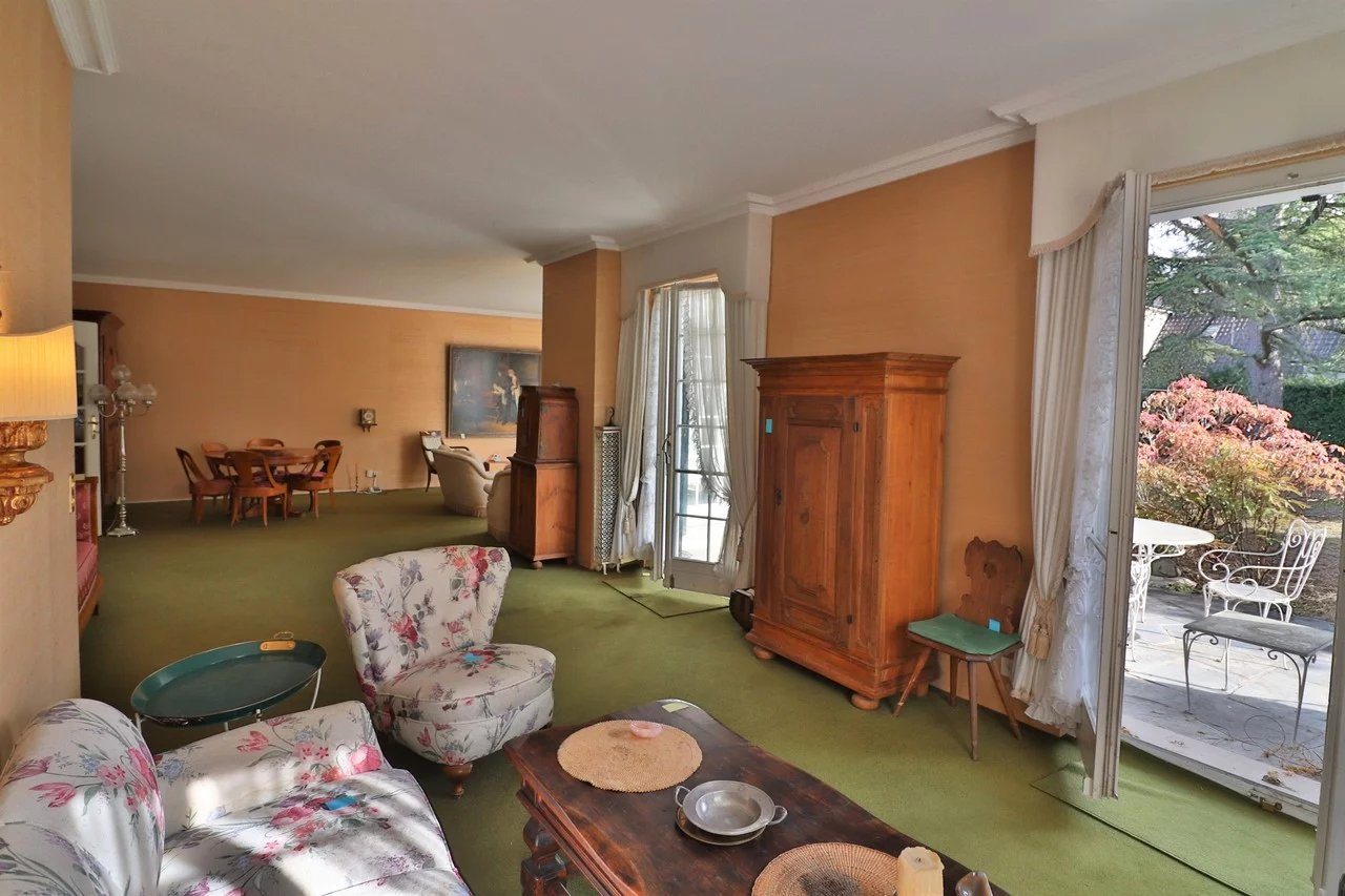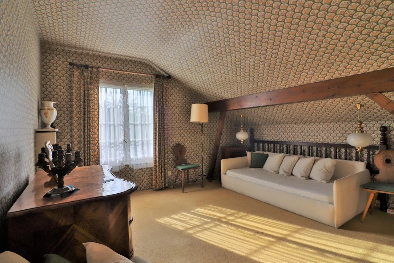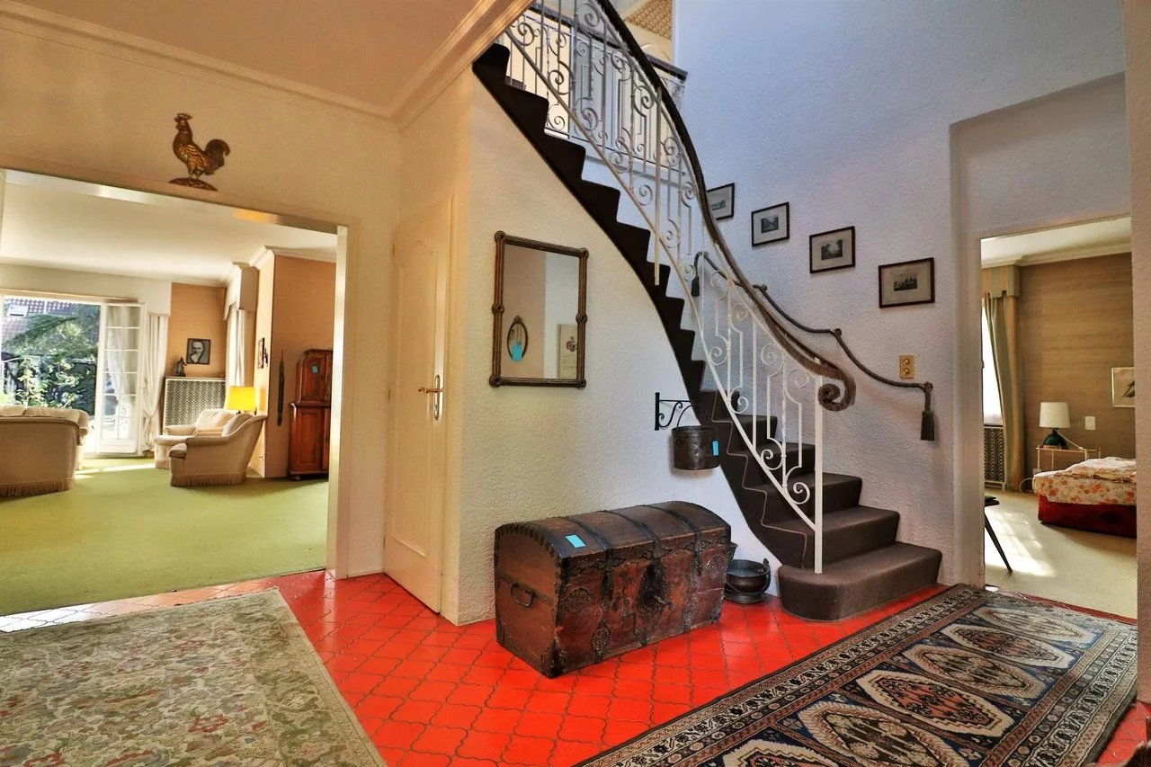 A l'étage : 3 généreuses chambres, 1 salle de bains avec veloux. La pente sous les toits est utilisée comme galetas. Au sous-sol: une grande cave, le local technique, une buanderie et le garage pour 2 voitures avec porte automatique.