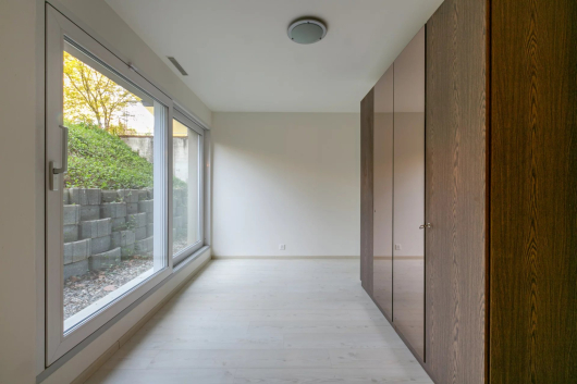 Au sous-sol, chauffé et aménagé, on trouve une agréable chambre avec une parois entièrement vitrée avec vue sur le coteau du jardin, une salle de bains avec douche et une pièce pouvant être aménagée selon les souhaits. Une cave et le local technique avec espace buanderie s'ajoutent à ce niveau.