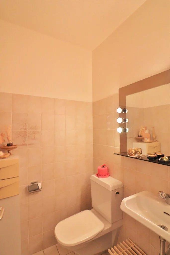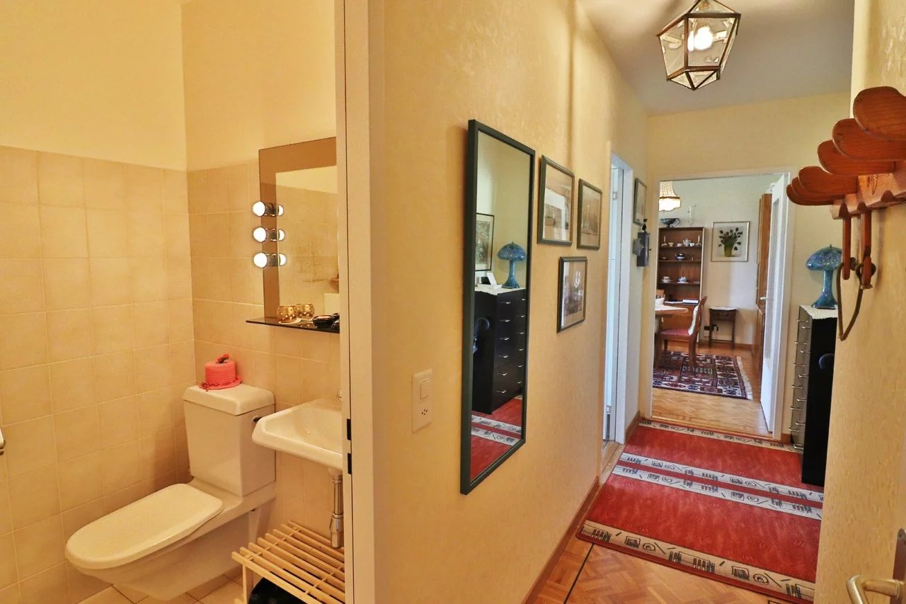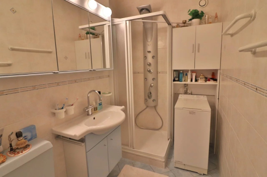 Une salle de bains avec douche et raccordement pour la machine à laver ainsi qu'un wc visiteurs avec lavabo complètent ce charmant appartement en parfait état d'entretien.