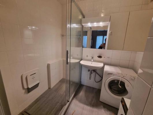 La partie nuit offre une belle chambre de 15m2 avec salle de bains en suite et toute une paroi d'armoires intégrées. Cette chambre a elle aussi accès au jardin. Une chambrette avec une salle de douche en suite ainsi qu'un wc séparé complètent la partie nuit.