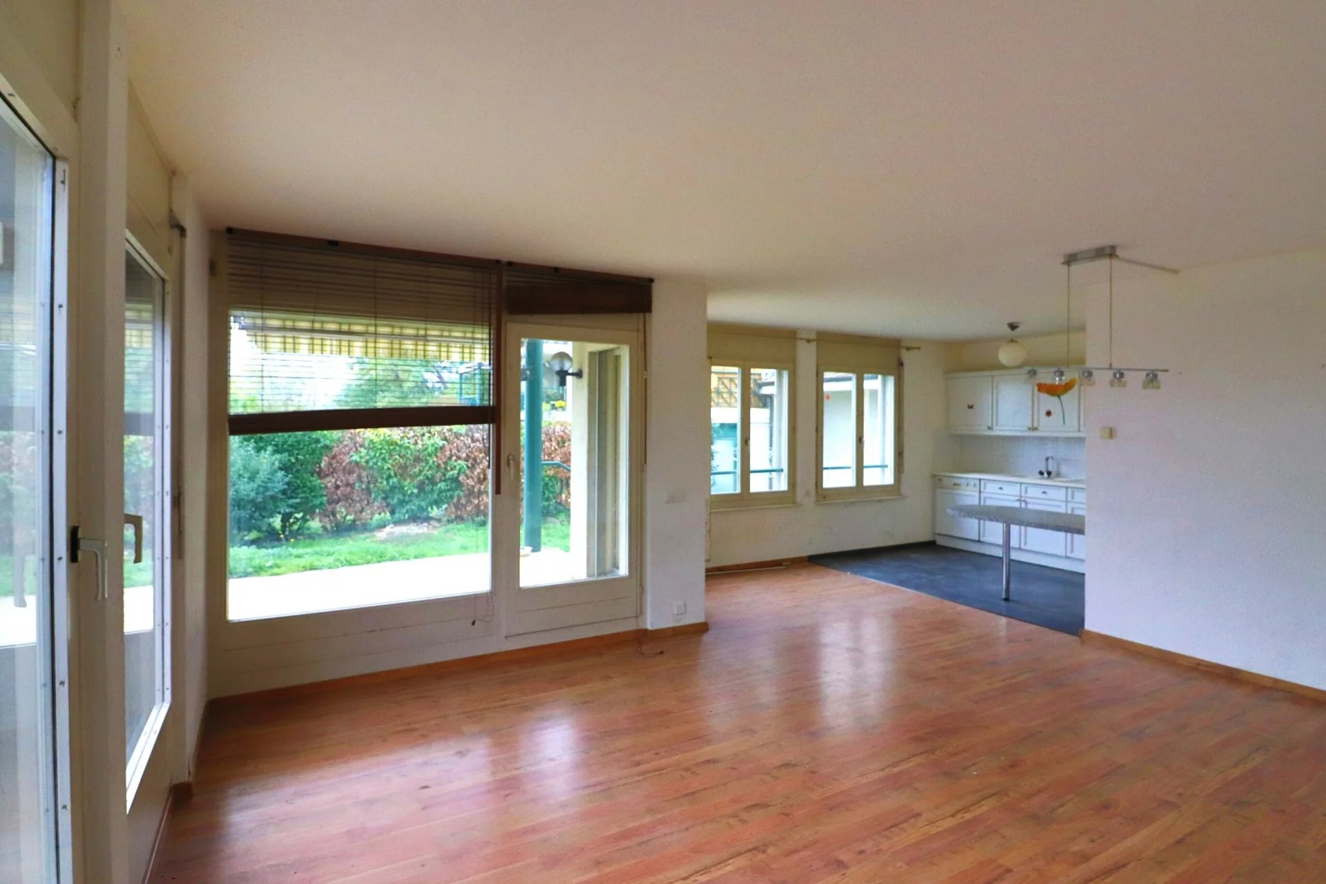 Dans le charmant village d'Avusy, ce lumineux 4 pièces de 99m2 avec terrasse et jardin est situé au sein d'une petite copropriété. Traversant, il est baigné de lumière et bénéficie d'une magnifique vue sur la campagne et les montagnes.