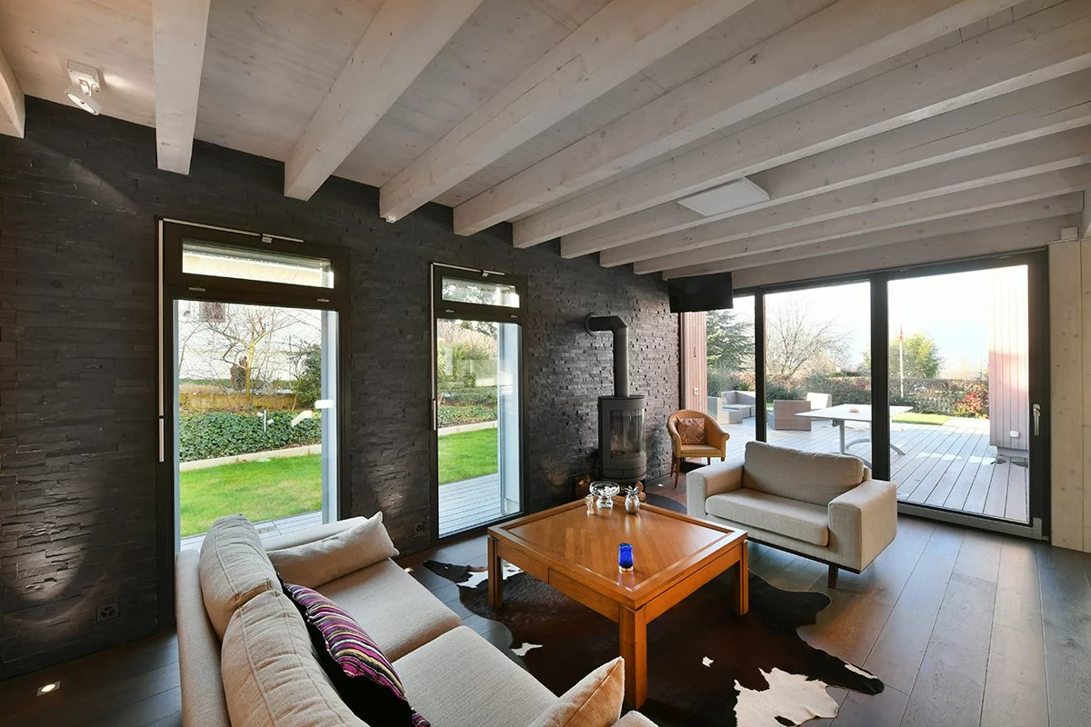 La partie jour vous offre un beau et grand salon donnant sur la terrasse et le jardin, la cuisine ouverte entièrement équipée est moderne et donne également sur la terrasse et le jardin a travers des baies coulissantes. Les poutres apparentes et la belle hauteur sous plafond sont sans conteste de beaux atouts pour ce bien.