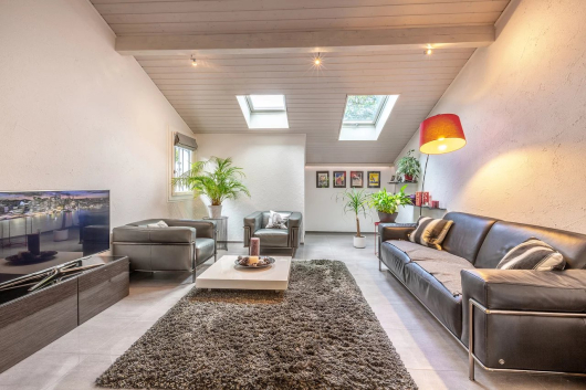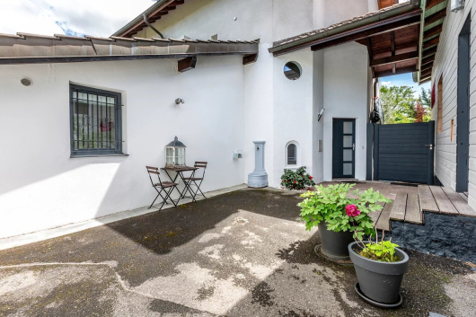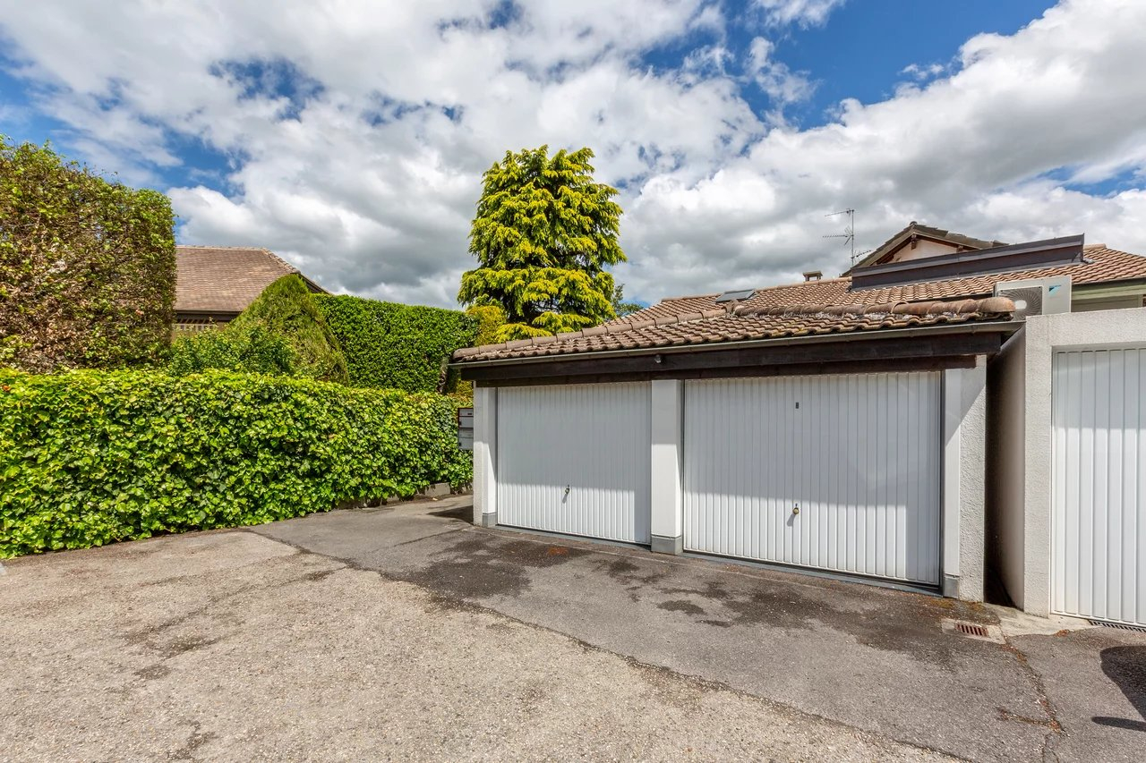Pour couronner le tout, un spacieux double garage avec porte automatique et espace de rangement.
