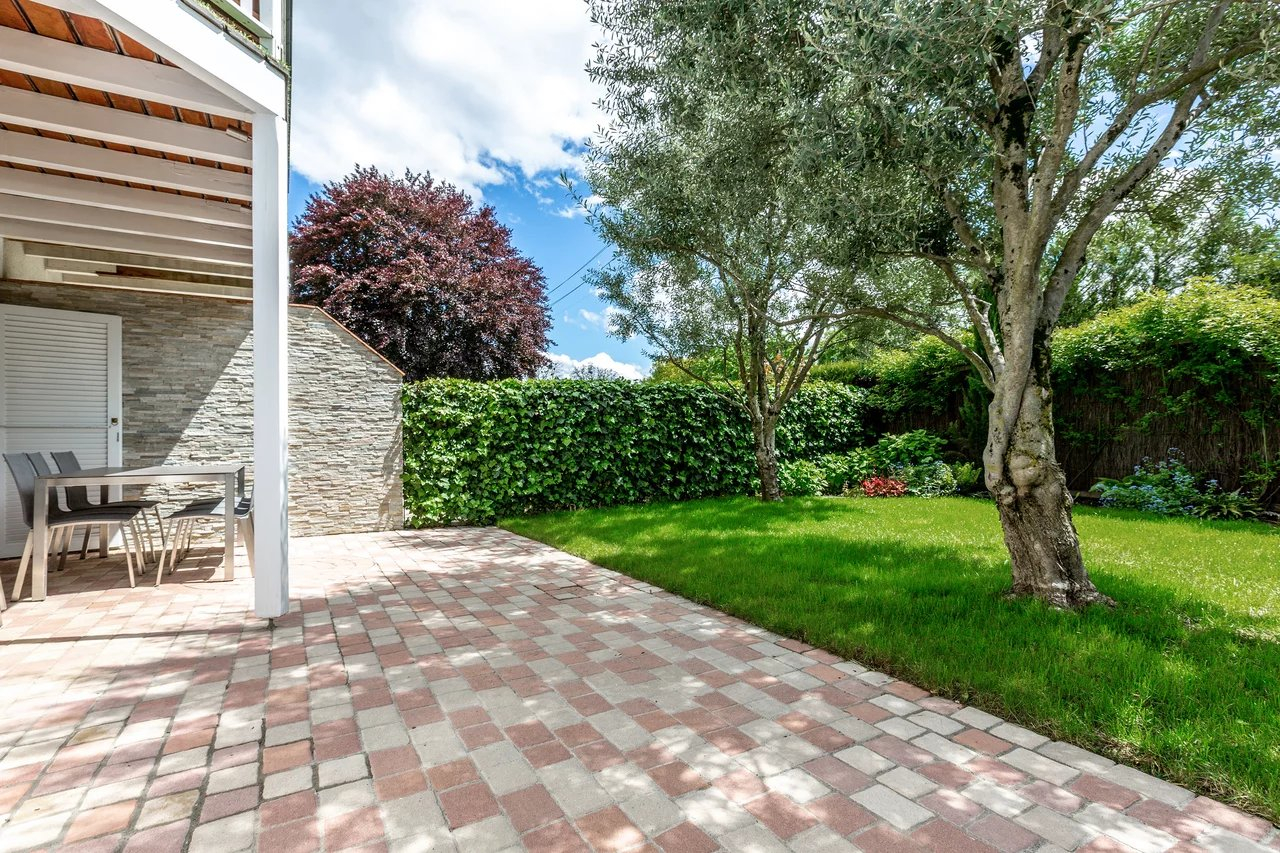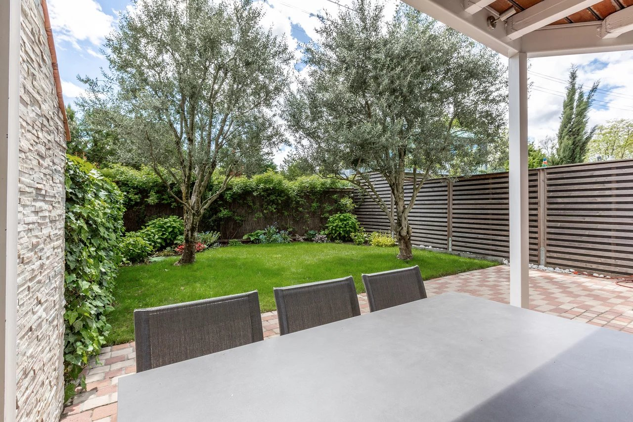 Une terrasse couverte précède le jardin, plat, entièrement clôturé et offrant beaucoup d'intimité. Un wc visiteurs complète ce niveau.