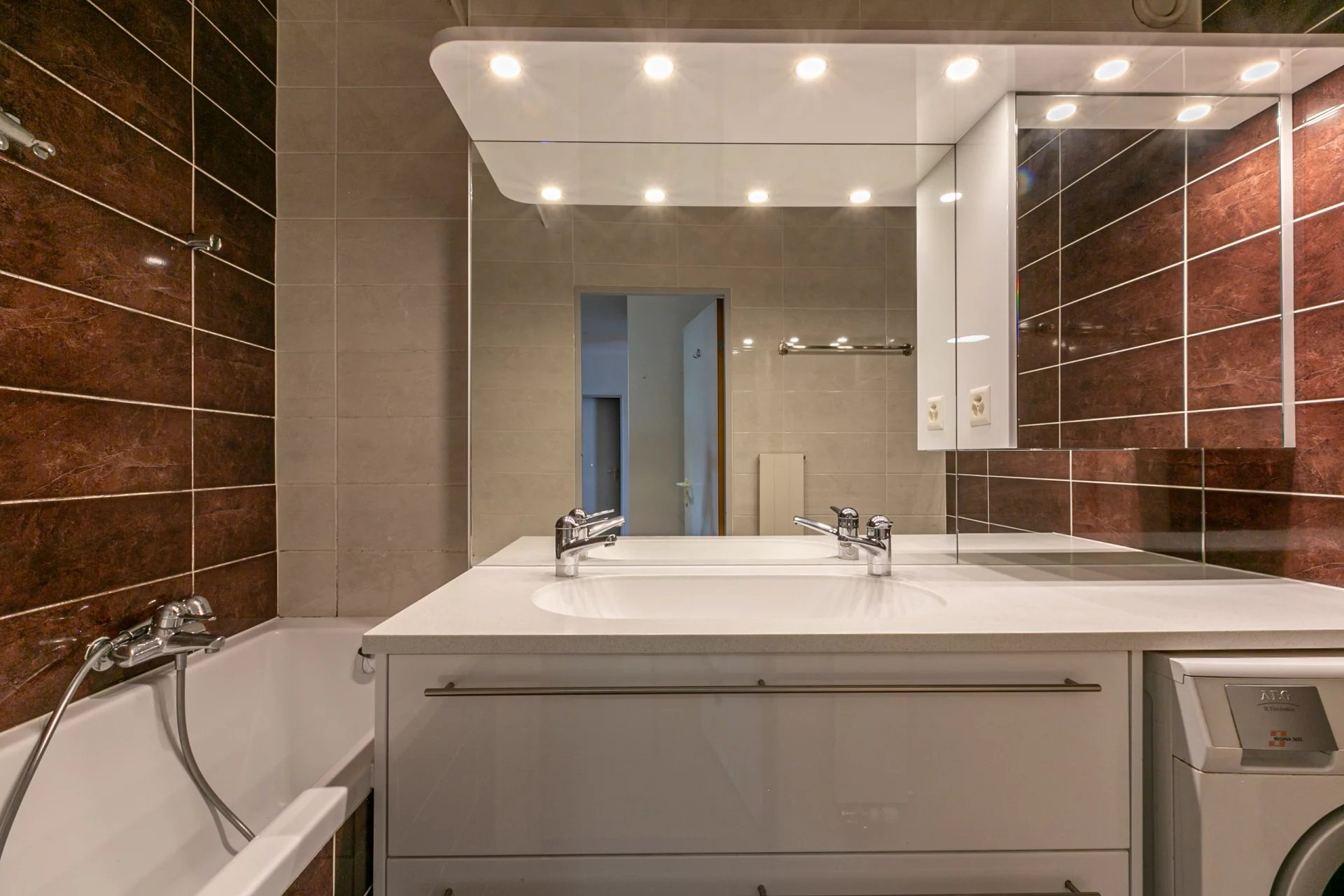 - Une salle de bains avec baignoire