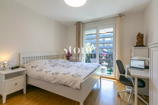Petite information concernant le quartier : Construit en 2012, le quartier est composé de quatre immeubles résidentiels élégants, de trois à cinq étages, entourés d’une parcelle commune arborée et de grands espaces verts. Bénéficiant du label Minergie, chaque bloc d’immeuble possède des cours intérieures tranquilles et végétales. Divers commerces de proximité sont à disposition tels que pharmacie, épicerie, coiffeur/esthéticienne, salle de sport, yoga ainsi qu’une salle pour les habitants.Une vie de quartier agréable avec un parking visiteur à disposition.A proximité immédiate du Rhône, de la campagne/forêt, d’une piscine et d’un centre sportif. Bien desservi par les transports publics, le centre-ville de Genève est atteignable en 15 minutes.