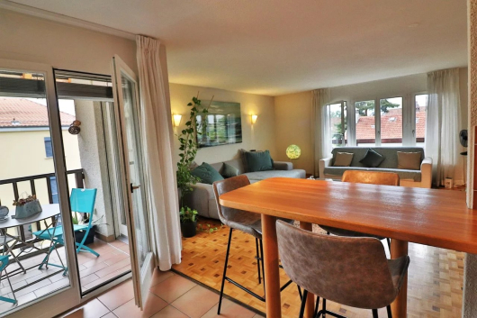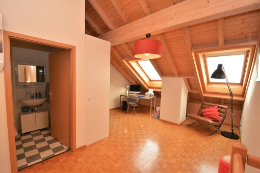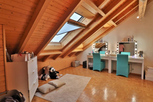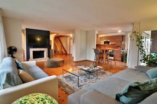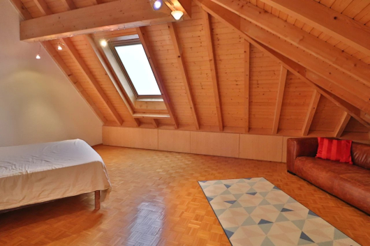 Au calme dans la commune de Veyrier, ce très beau duplex séduit par ses volumes généreux, son exposition et son grand salon avec cheminée. Au dernier étage, il profite d’une belle hauteur sous les combles avec poutres apparentes.