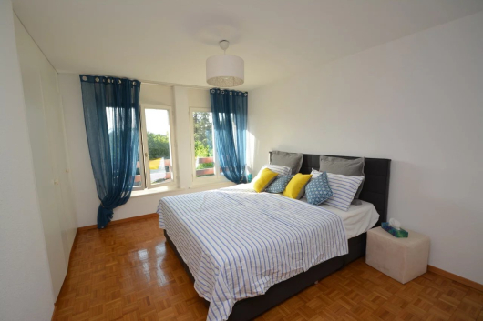 Grand hall d’entrée, cuisine entièrement équipée donnant sur une petite mais belle loggia, salon-séjour avec cheminée, salle-à-manger, grande chambre à coucher, salle de bains avec baignoire, WC visiteurs avec lavabo.