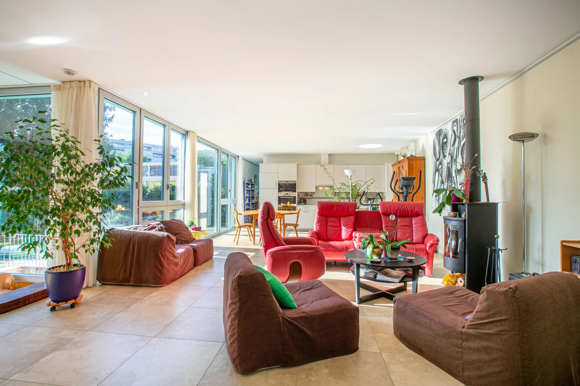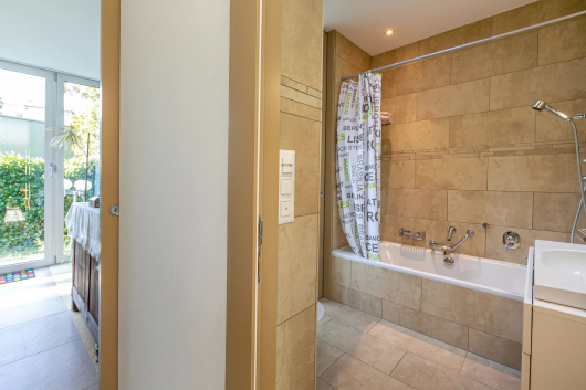 Au rez-de-chaussée, vous serez séduits par la vaste pièce de vie de plus de 80 m2, en forme de "S", ouverte sur la cuisine entièrement équipée et aménagée. La grande chambre parentale de 17m2 avec sa salle de bains privative et son dressing profite de beaucoup d’intimité et a accès au jardin. Un bureau de 13m2 pouvant être transformé en chambre complète le rez.