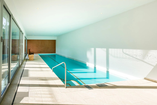 Au rez inférieur, totalement excavé et avec entrée indépendante, vous découvrirez une spacieuse chambre de 22m2 avec accès à un patio, une salle de bains avec douche ainsi qu'une superbe piscine chauffée avec nage à contre-courant. Le local technique avec coin buanderie et un abri complètent ce niveau.