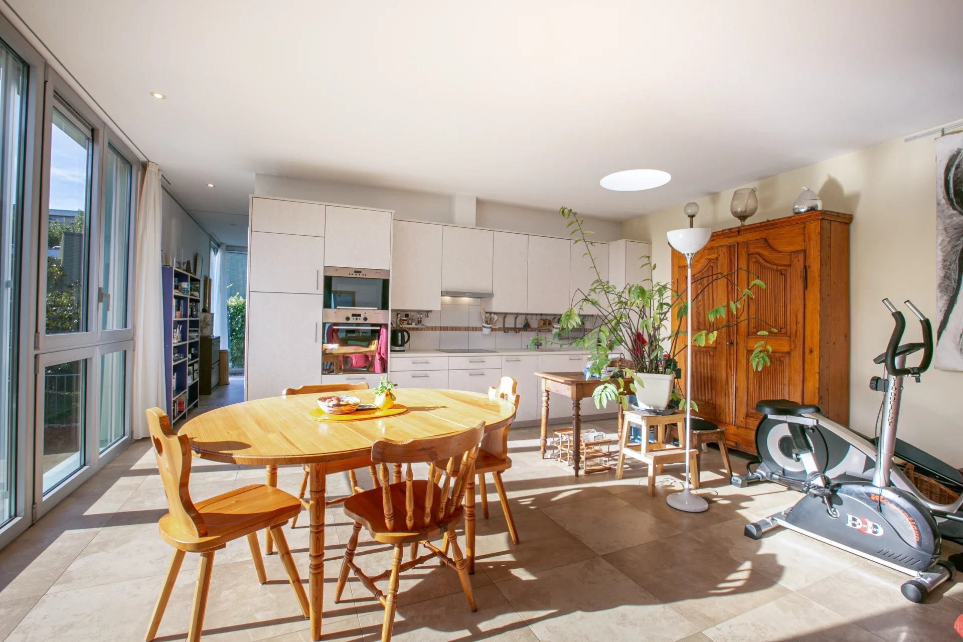 Baignée de lumière, cette superbe maison d'architecte construite en 2009 se distribue sur deux niveaux et offre 344m2 utiles. Ses grandes baies vitrées, ses puits de lumière ainsi que ses belles hauteurs sous plafonds lui confèrent volumes et luminosité.