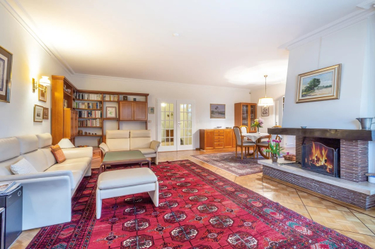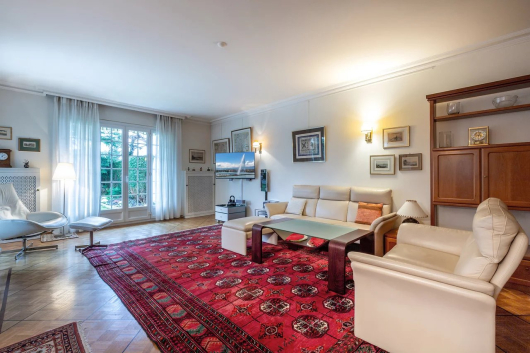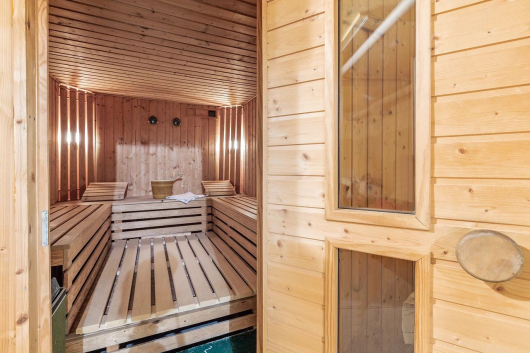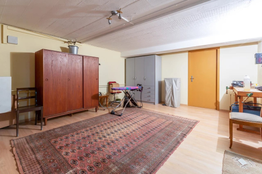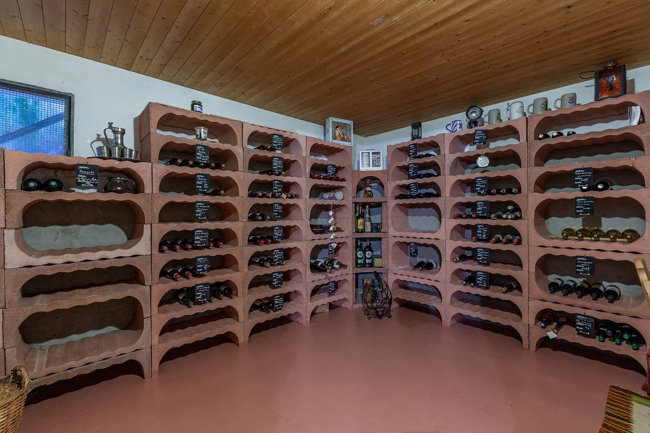 Au sous-sol, qui a été complètement aménagé, il y a un espace de réception, un carnotzet, un sauna et une très grande cave à vin. Egalement un local technique et une buanderie.