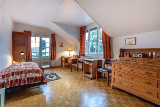 L'étage se compose quand à lui de 3 chambres de bonne taille avec une salle de bains commune. Il y a également deux greniers en sous pente.
