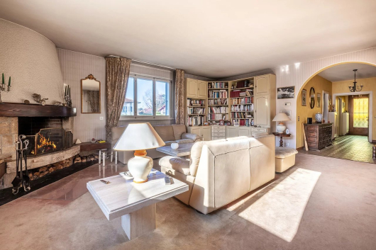 Elle se compose de 6 pièces : Salon avec cheminée, salle à manger s'ouvrant sur une terrasse donnant accès à sur un jardin arboré avec piscine, une cuisine fermée, 3 chambres à coucher, un bureau, une grande salle de bains, WC visiteurs toilette avec lave-mains (possibilité de créer une deuxième salle d'eau).