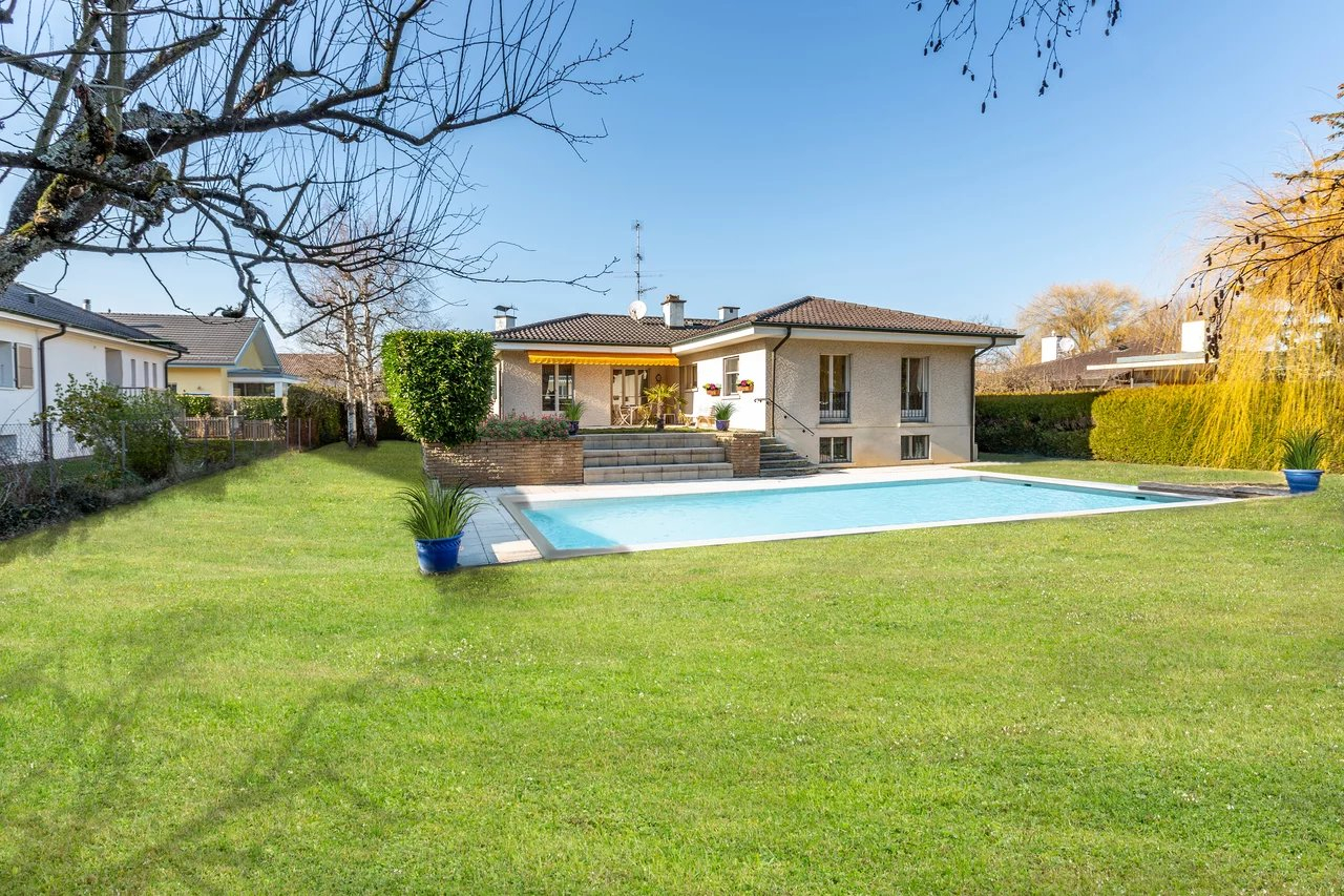Villa individuelle de plain-pied plus sous-sol. Sise sur une parcelle d’environ 1350 m2 située dans un quartier résidentiel, au calme et verdoyant.