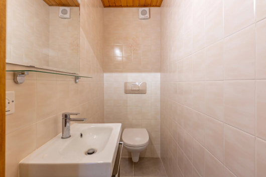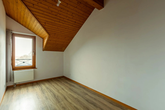 On the first floor, you will discover a large master bedroom. Its exposed beams give it a lot of charm. Two other bedrooms, a bathroom with bathtub and space for a washing column and a separate toilet with washbasin complete this level.