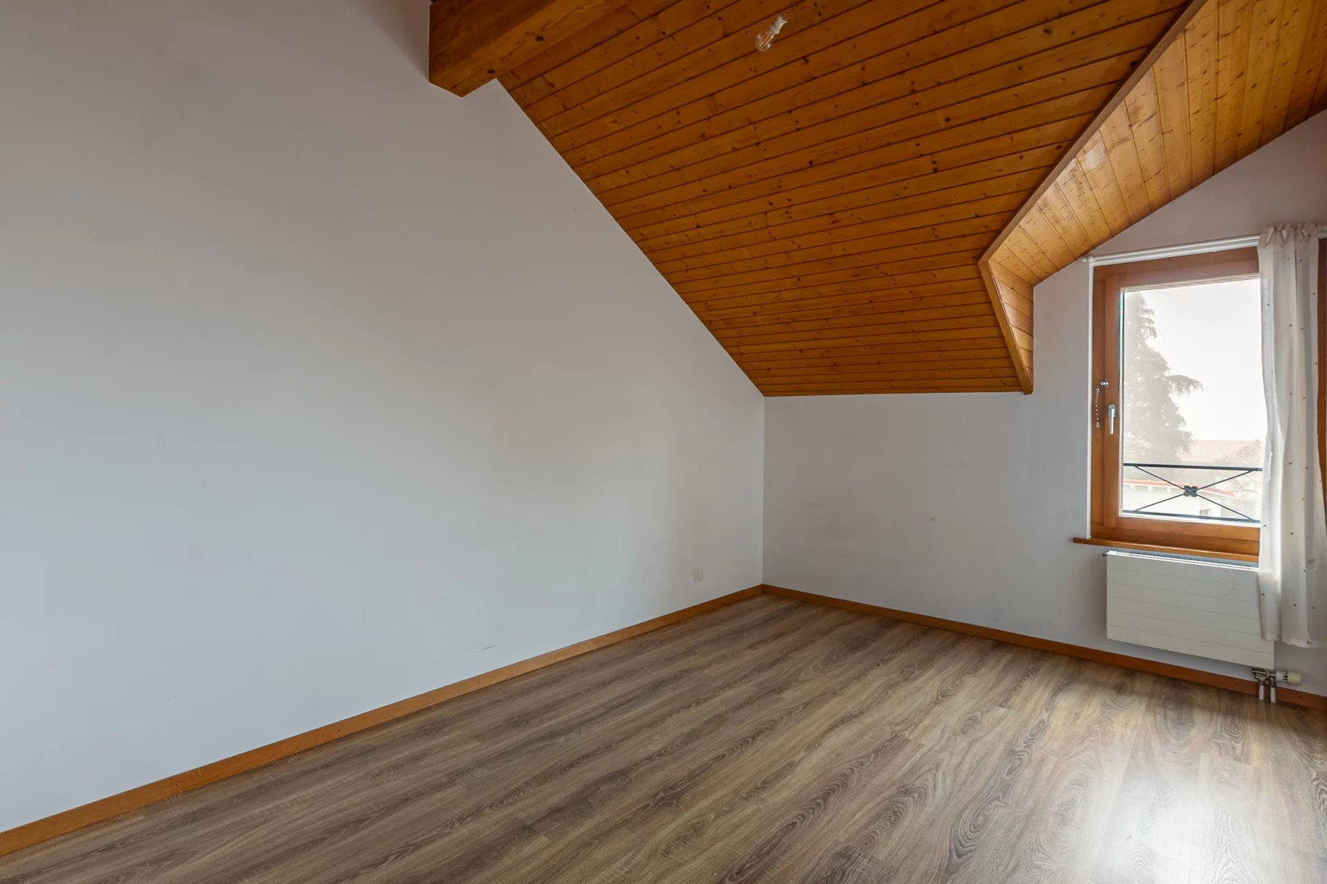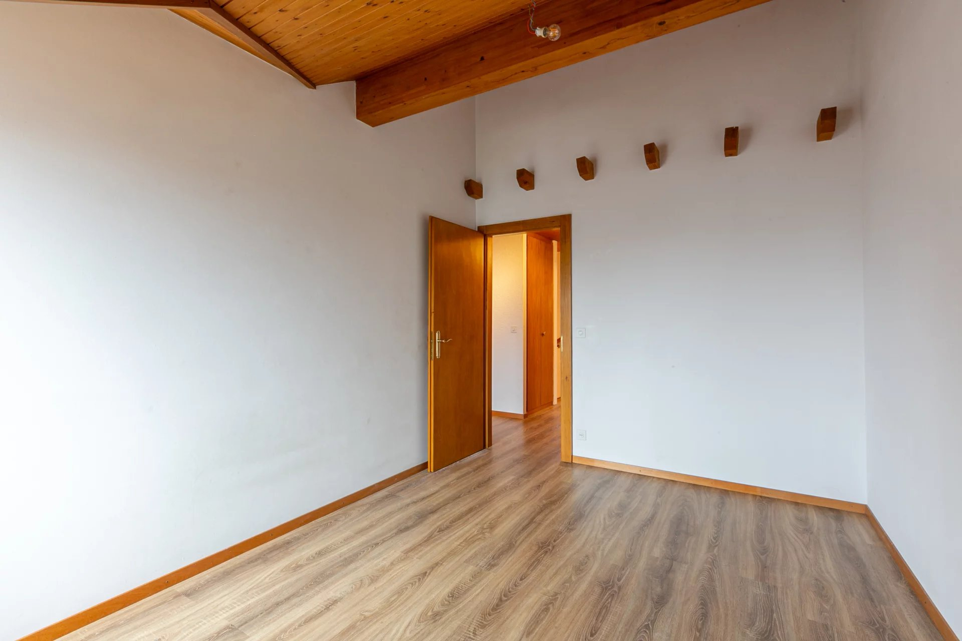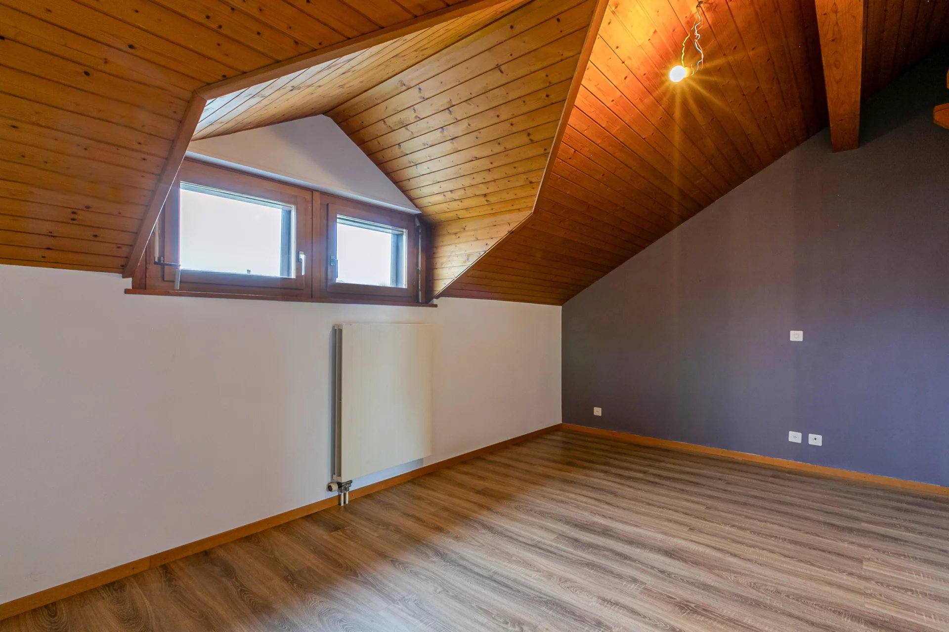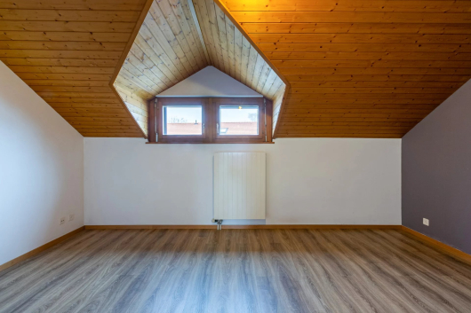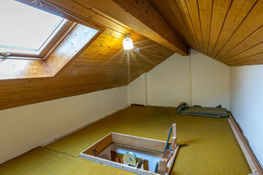It would be possible to modify the access to the attic with velux from one of the bedrooms to take advantage of this extra space.