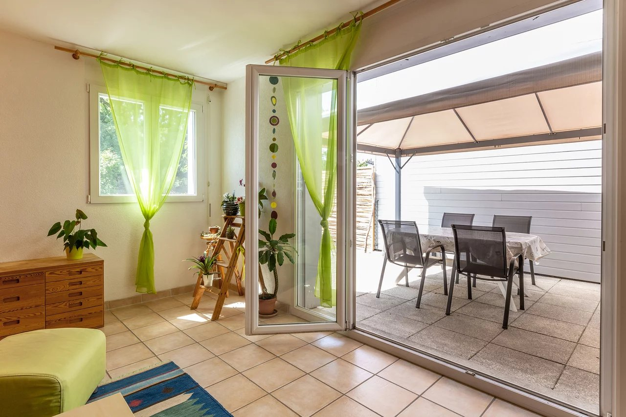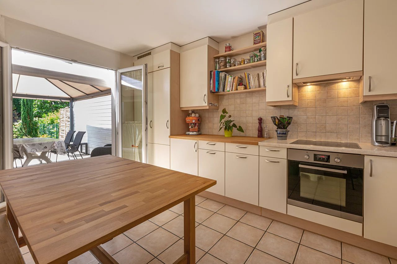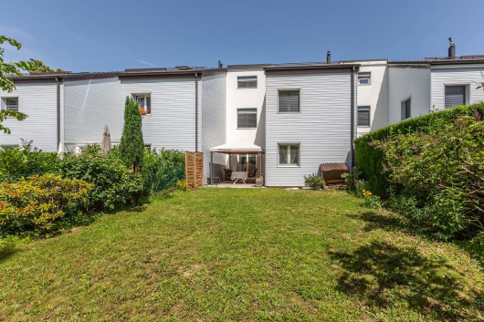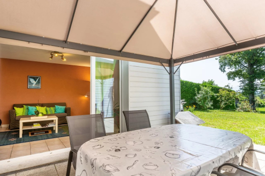 The garden, completely fenced, overlooks the magnificent large park of the condominium, totaling more than 5800m2. The southern exposure of the house, will offer you the best sunshine throughout the day.