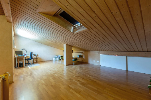 Upstairs, 3 bedrooms of good size and a bathroom with bath and window. Under the eaves, a superb heated space too, with a window and a velux window. The basement, heated and ventilated, benefits from wolf windows.