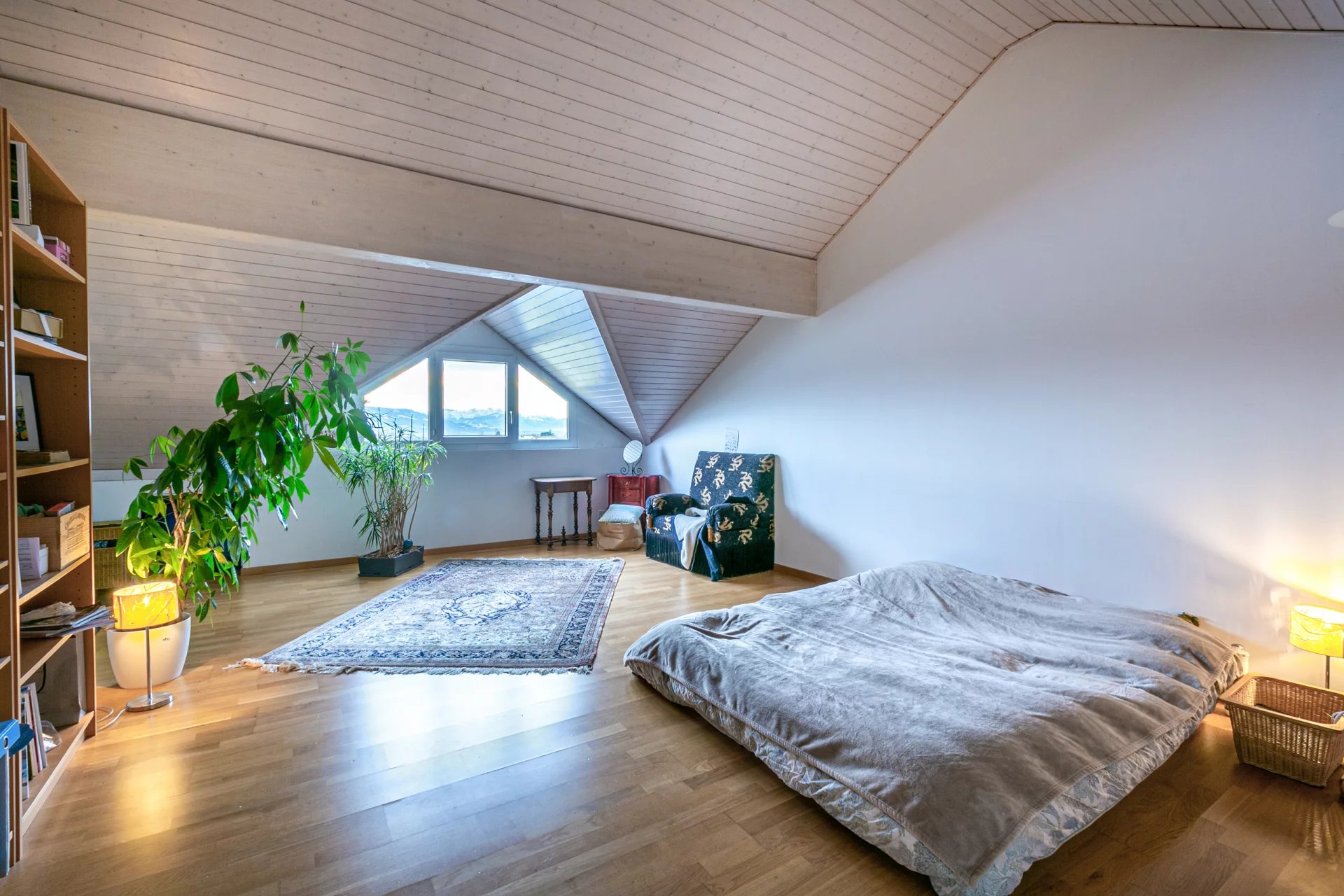On the second floor is a very large master bedroom with its dressing room, as well as a bathroom with bathtub, shower and separate toilet.