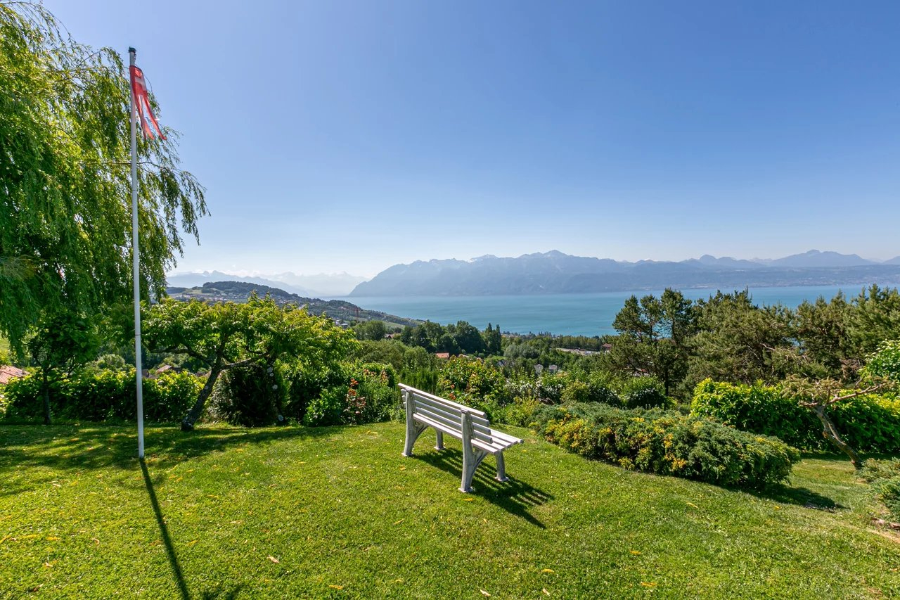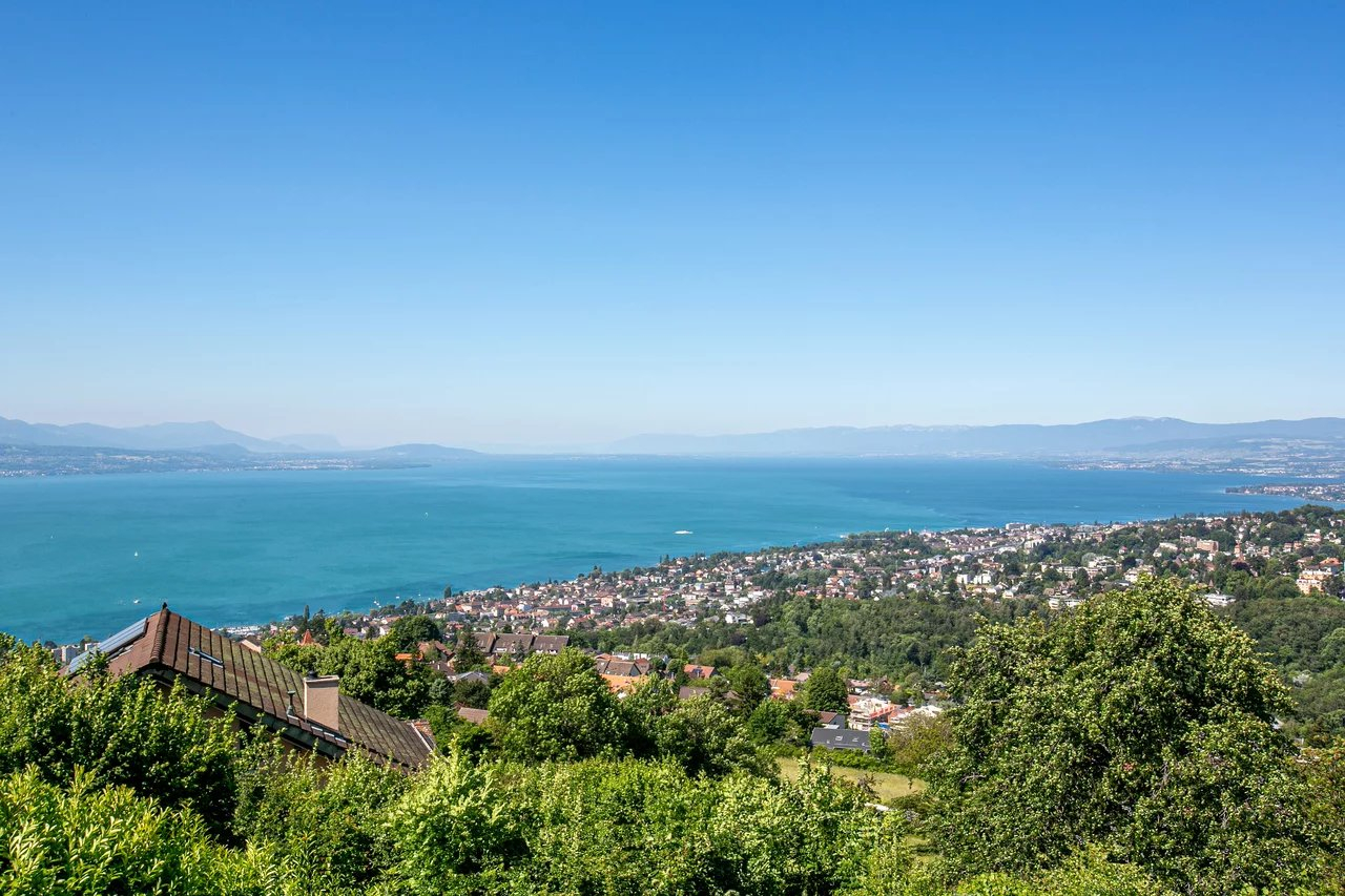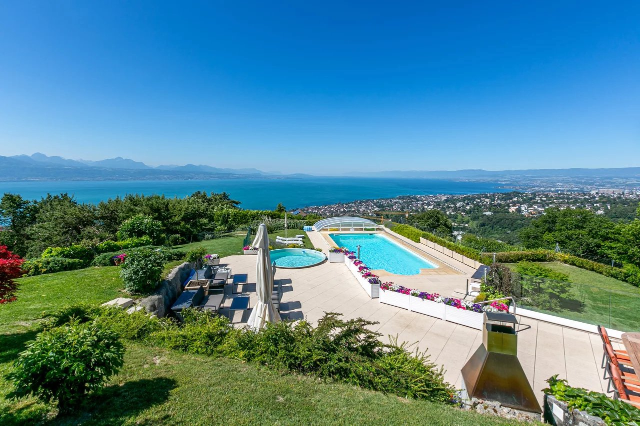 Located on the heights of Belmont-sur-Lausanne, this property enjoys an extraordinary panoramic view of the lake and the Alps.