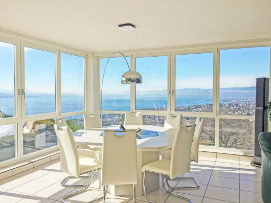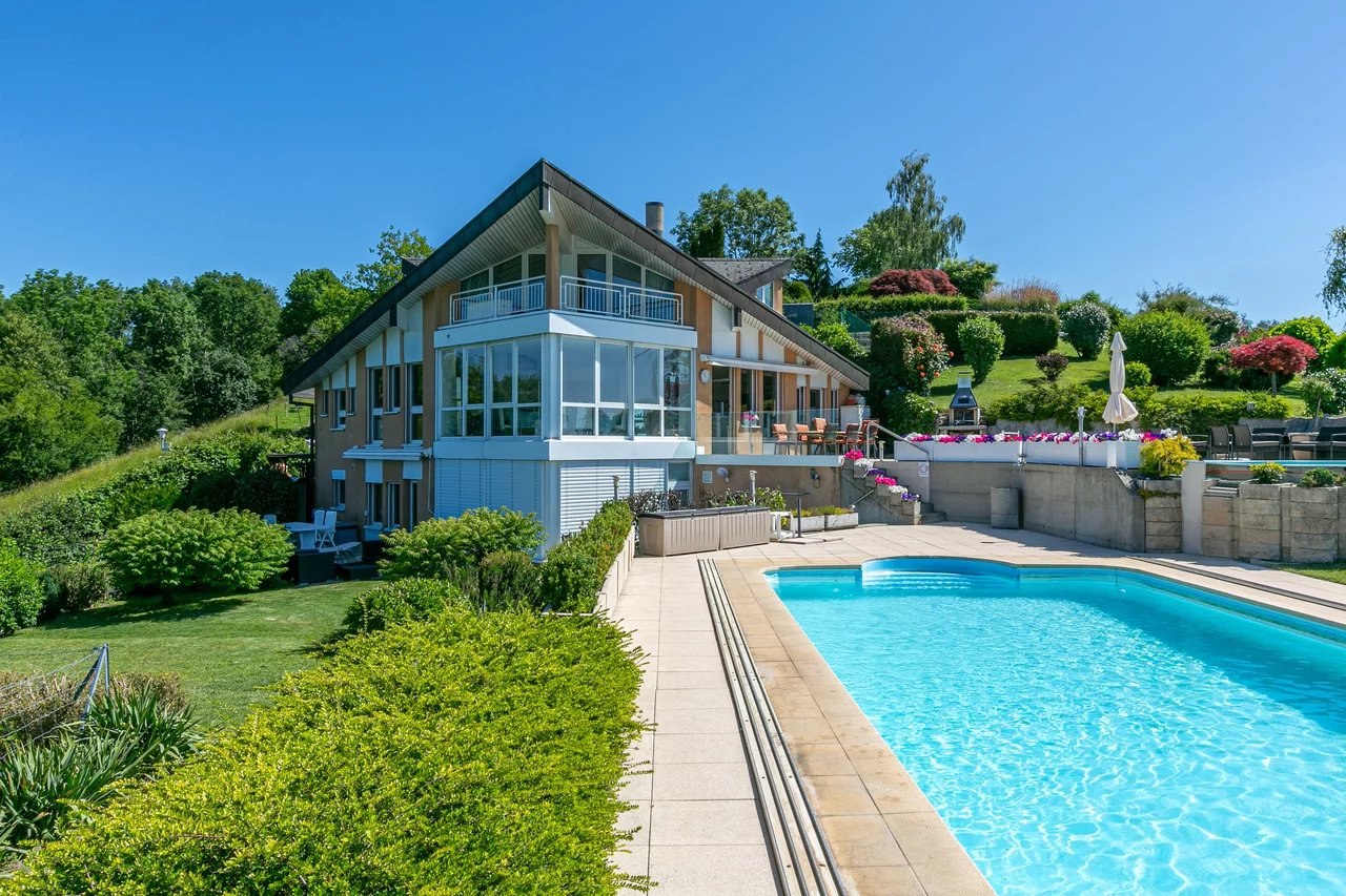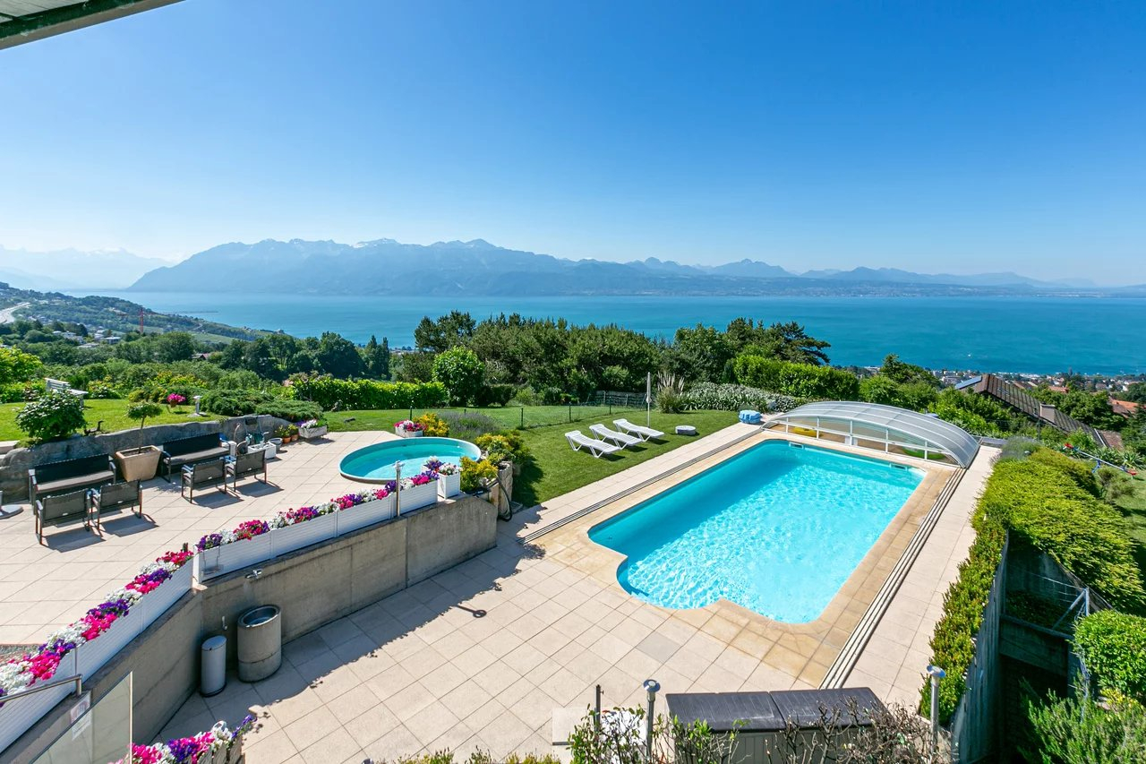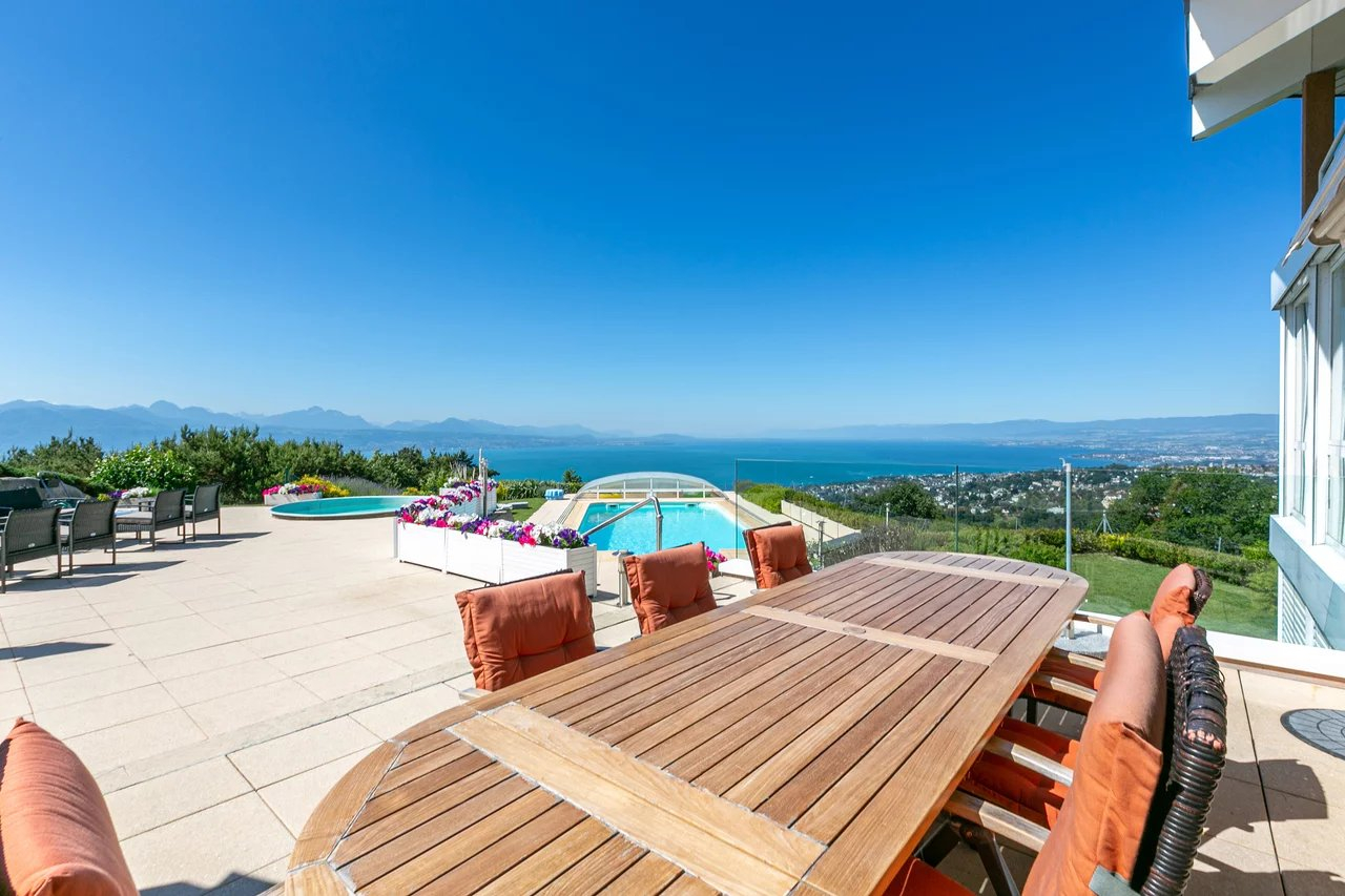 Located on the heights of Belmont-sur-Lausanne, this property enjoys an extraordinary panoramic view of the lake and the Alps.