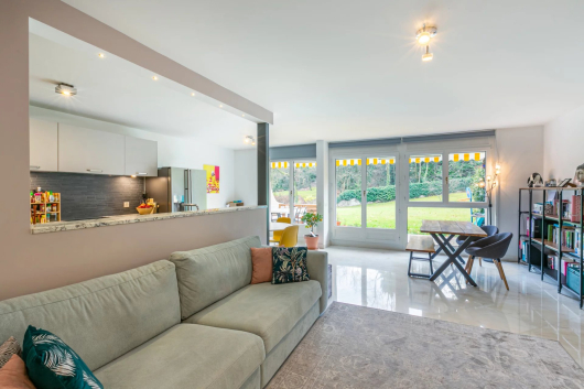 The residence of Vallon is a secured co-ownership benefiting from a very large private park in the popular district of Chêne-Bougeries. This magnificent flat recently renovated entirely with top-of-the-range services will seduce people in search of nature while keeping the proximity of the city and all the conveniences.