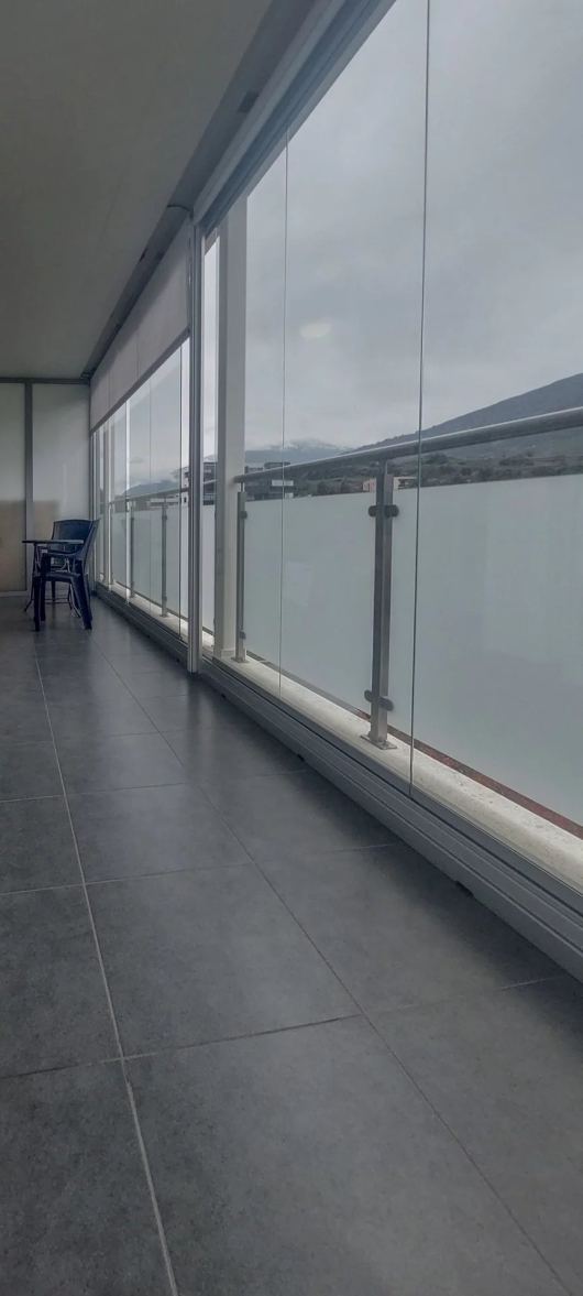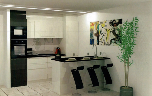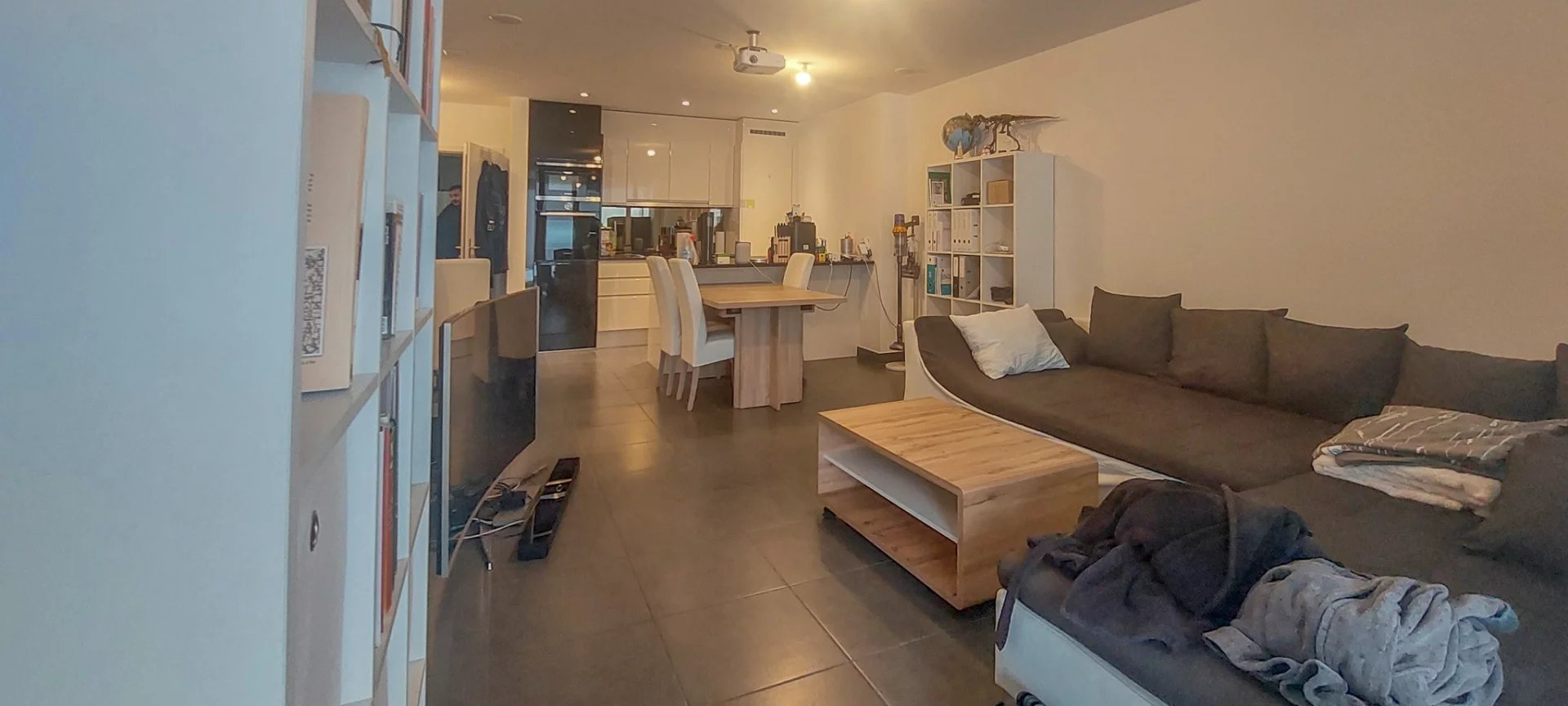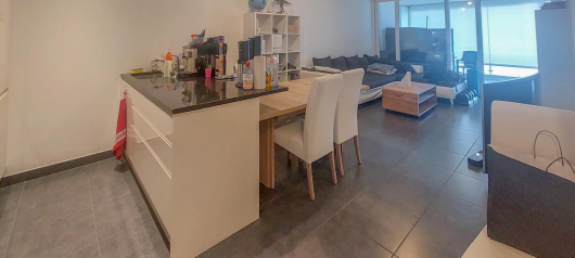 It is composed of a high-end kitchen open to the living/dining room, a bedroom with cupboards, a bathroom with a corner bathtub-jacuzzi and a 20m2 glazed terrace opening onto the whole length.