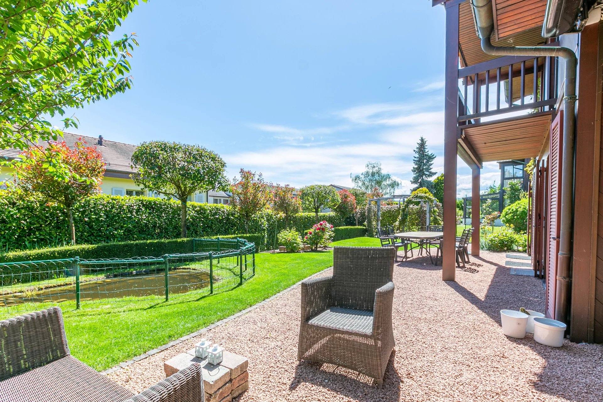 You will be seduced by the incredible 50m2 living room with large bay windows on both sides, the spacious dining room with fireplace and above all you will be charmed by the superb landscaped garden, beautifully maintained and filled with the most varied species and embellished by a pond and a rose garden with gazebo.