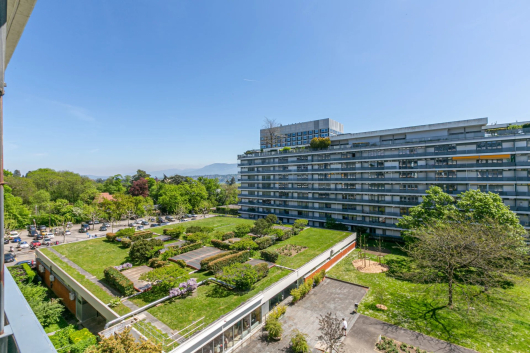 The building has a beautiful rooftop swimming pool with a superb view over Geneva.