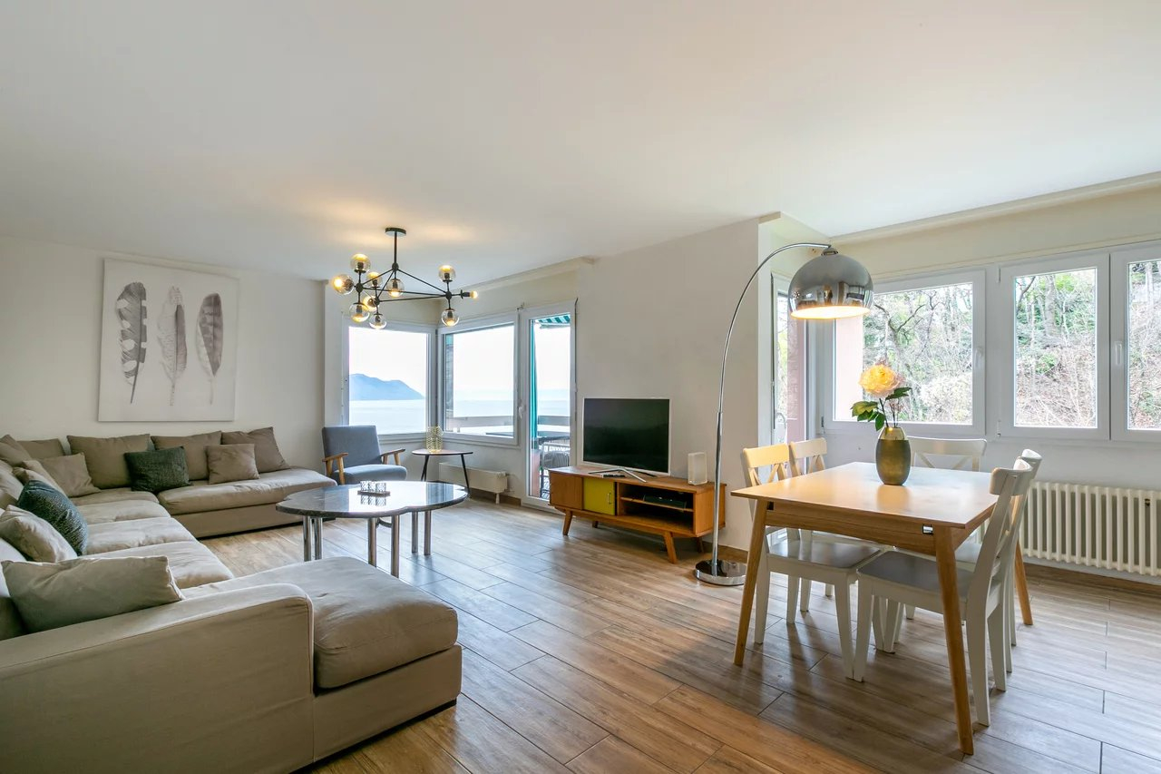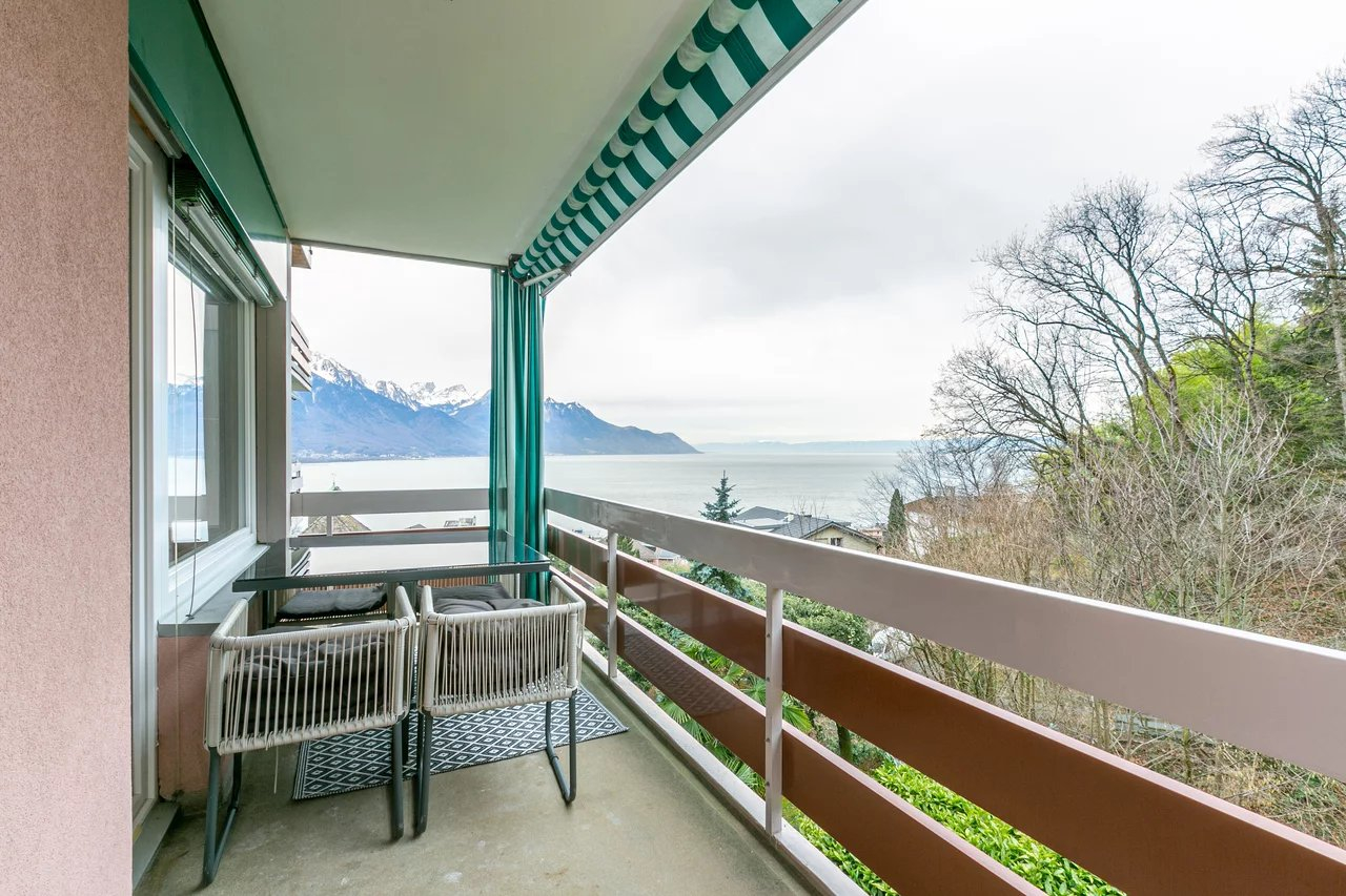 Magnificent 3.5 room apartment located on the heights of Montreux. It has an incredible 180 ° view of the Lake and the Mountains, the rooms are spacious and have good light. This property was completely renovated in 2018 with quality materials. It is composed as follows: 2 bedrooms,1 Fitted kitchen...